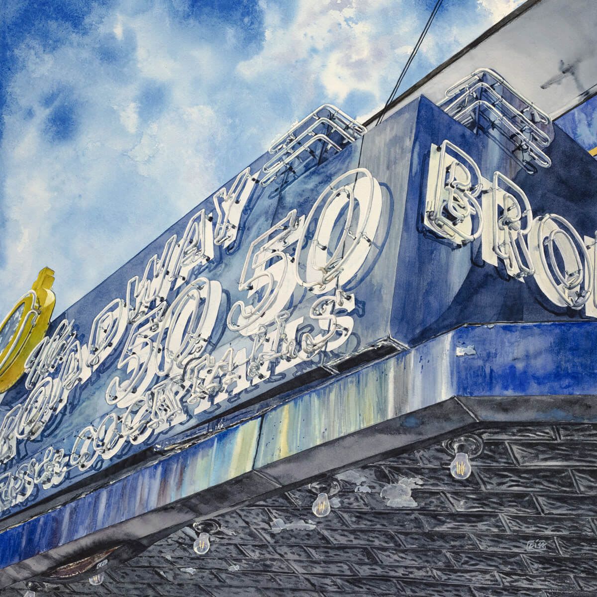 The Broadway 50 50, Watercolor, 20” x 20”