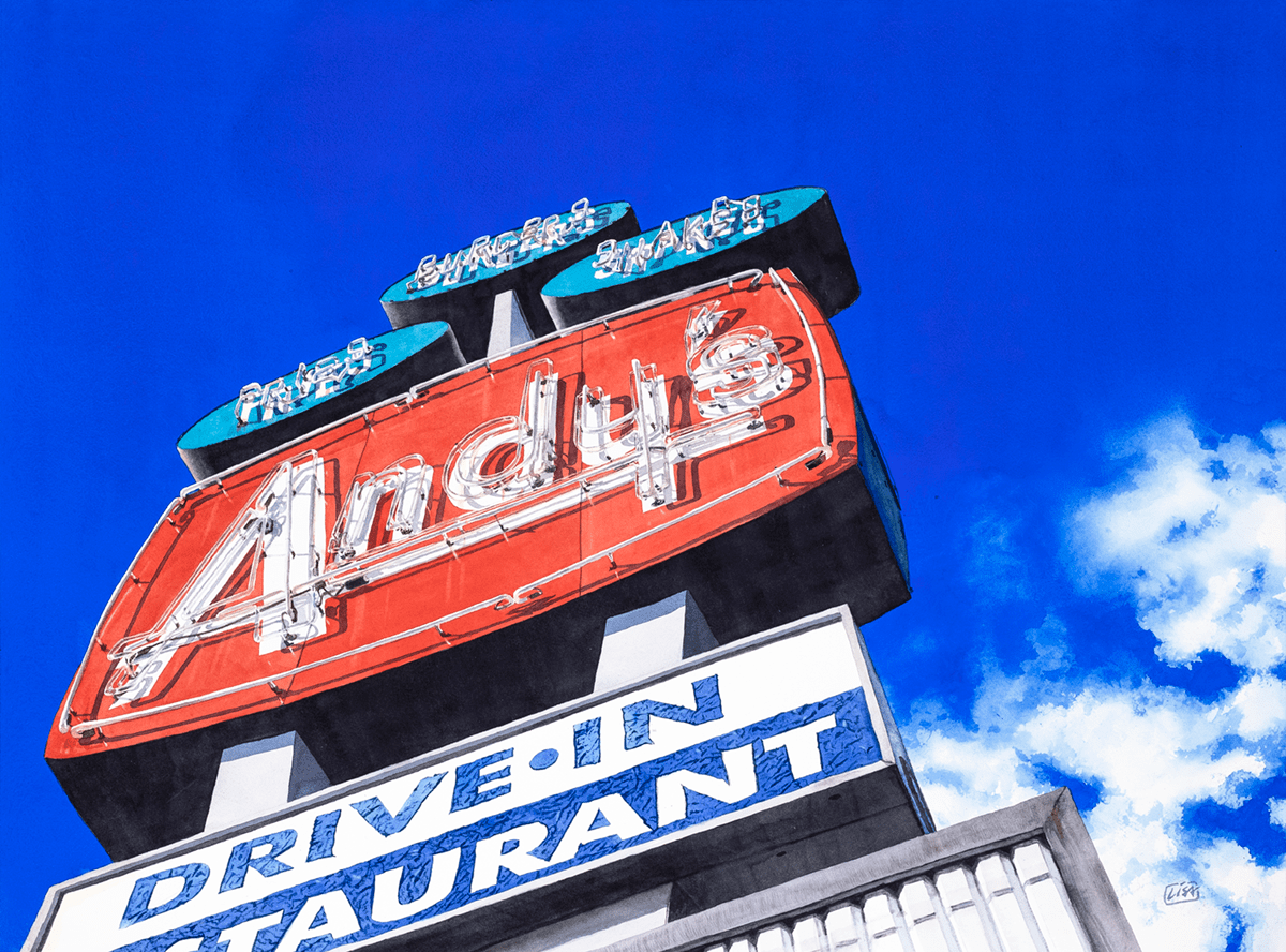 Andy’s Drive-in, Watercolor, 22” x 29”