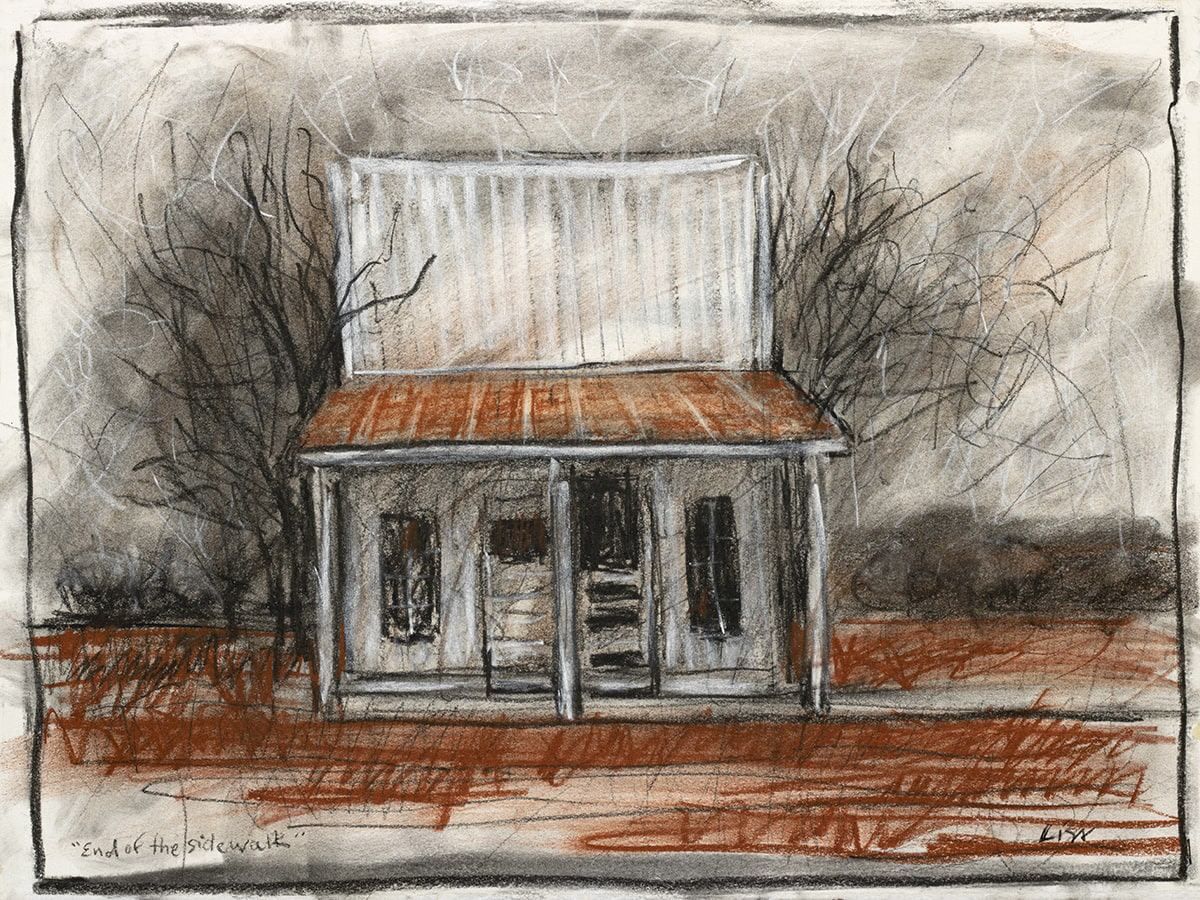 End of the Sidewalk, Charcoal, Conté, 12” x 15”